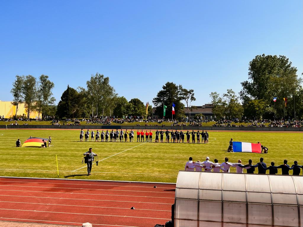 Sodann war unser Gruppen-Lehrwart Marco Niebergall zum Abschluss seiner Karriere als Schiedsrichter-Assistent in der Jugend-Bundesliga beim U16-Länderspiel zwischen Deutschland und Frankreich am 25.05.2023 in Dillingen vor über 2.500 Zuschauern als Assistent im Team von Lukas Jungfleisch (Saarbrücken) im Einsatz (siehe Fotos).